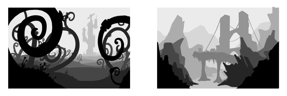 Exploration in value and layout for environments. Quick concepts for possible environment.